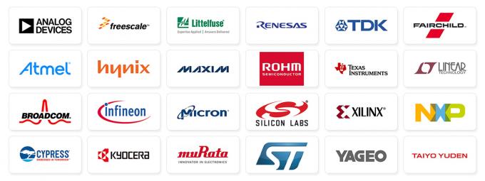 我们的分销品牌包括XILINX、ALTERA、ATMEL、INFINEON、ST、SAMSUNG、TEXAS INSTRUMENTS、ON、东芝、MICROCHIP、CYPRESS、FREESCALE等。我们分销超过200000种产品,从半导体到电阻器、电容器、二极管、电感器、连接器、晶体管、传感器等。